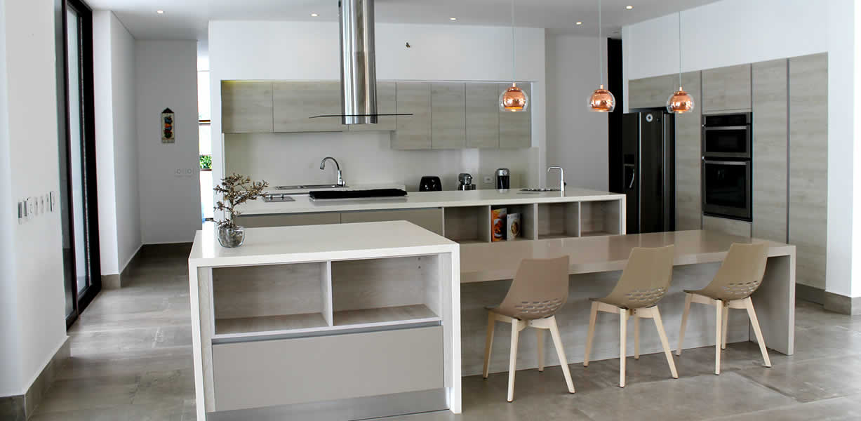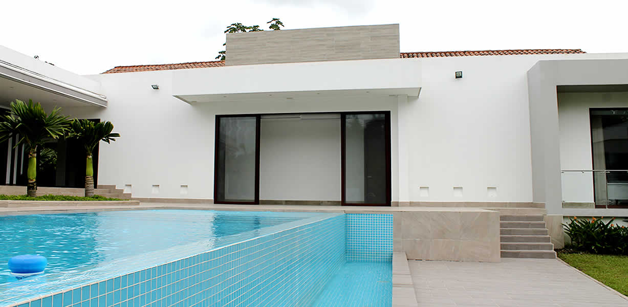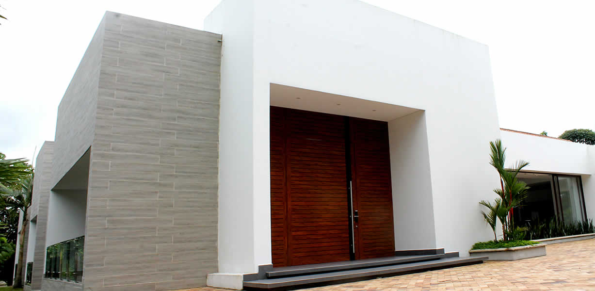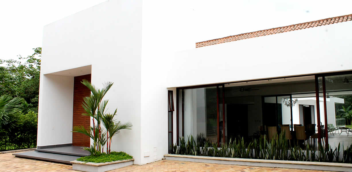 La combinación sutil y cuidadosamente trabajada de materiales y colores expresa una armoniosa composición que brinda una sensación de tranquilidad. La casa, con una planta en forma de L, se organiza a lo largo de los dos ejes de los volúmenes principales. En uno de ellos se encuentran las zonas sociales, donde destaca una elegante y luminosa cocina. En el otro volumen, de una estructura similar, se ubican las habitaciones. Cada una de ellas es un espacio con sus propios servicios y salidas independientes hacia el exterior, lo que las hace funcionales y contemplativas de forma autónoma, siempre recordando la conexión de esta arquitectura con el paisaje. Estos dos grandes espacios de la composición de la casa enmarcan la zona de la piscina, que se convierte en un paisaje único donde se entrelazan lo verde, el agua y la pureza de una arquitectura impecable, resaltando la intención de lograr tranquilidad y serenidad en su justa medida.
