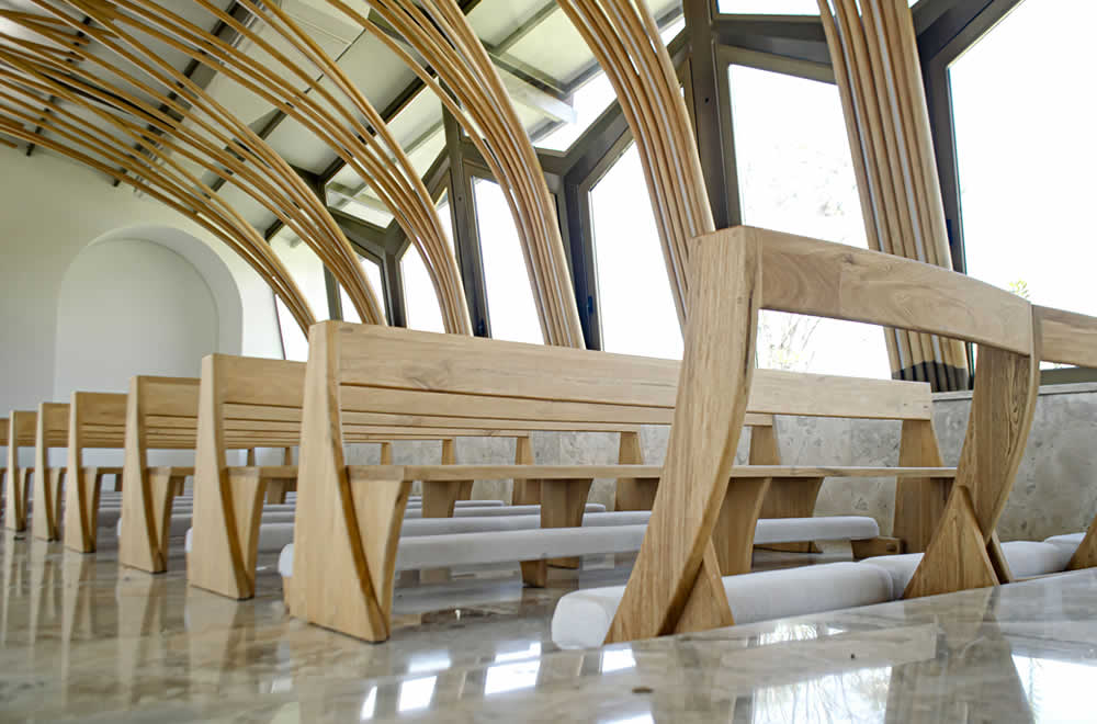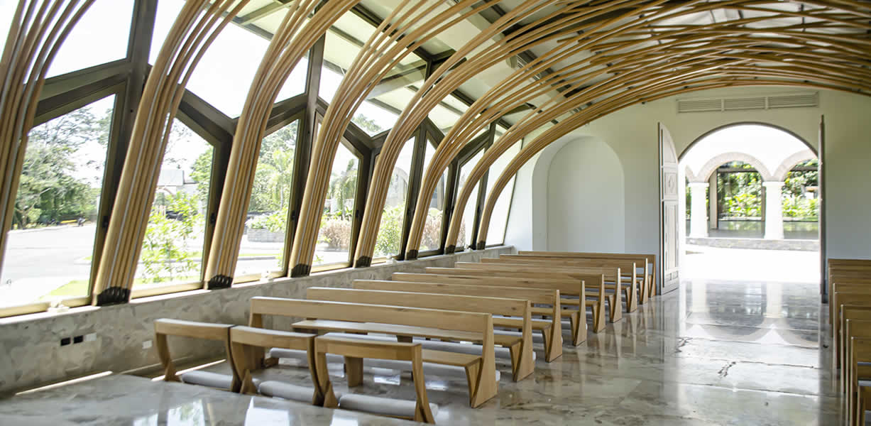 Uno de los puntos destacados de Hacienda Las Marías es su capilla, que muestra una simbiosis entre la arquitectura contemporánea y el barroco español. La fachada de estilo barroco, con sus formas sinuosas y asimetría, representa la influencia hispánica en nuestra arquitectura colonial. Cada detalle de la capilla, incluidas las campanas fabricadas por herreros con siglos de conocimiento, refleja la esencia del proyecto en su totalidad.