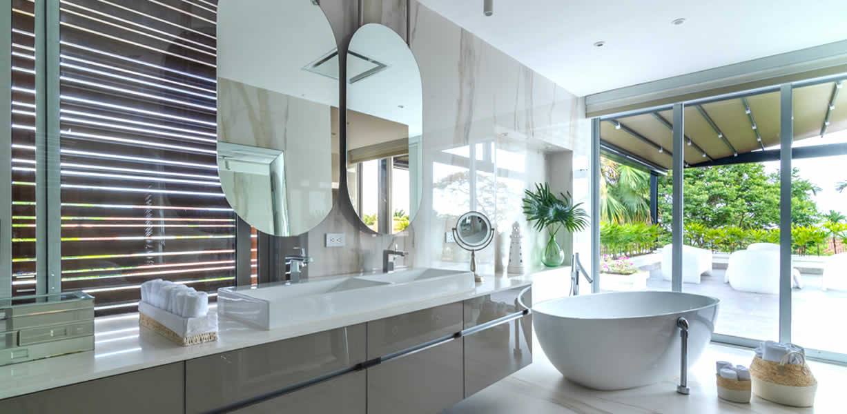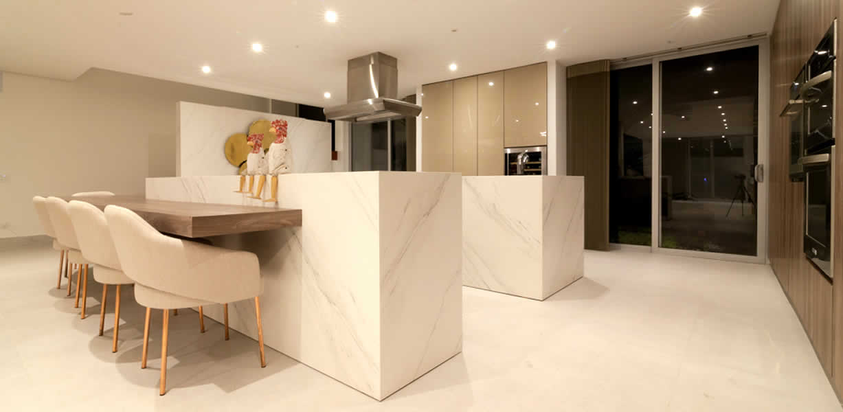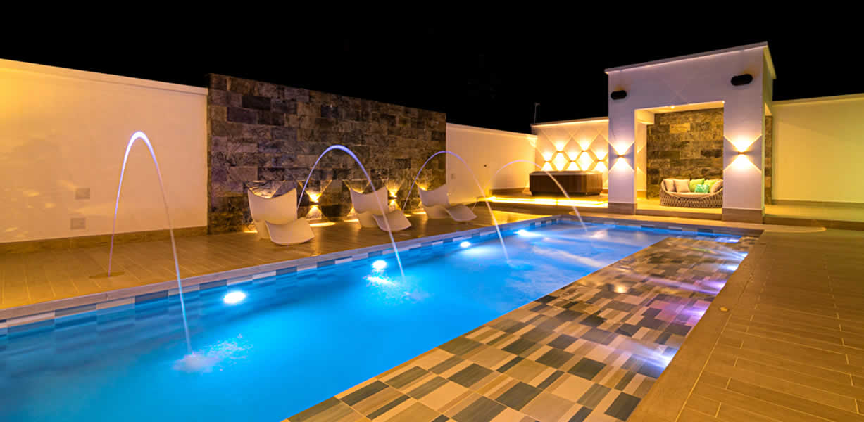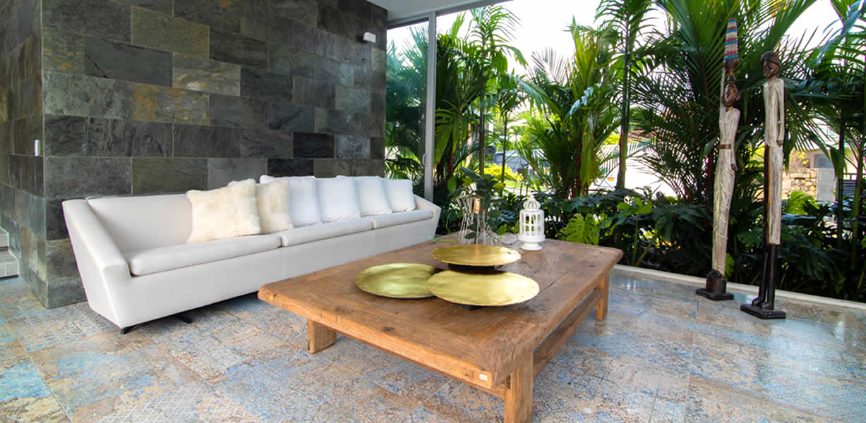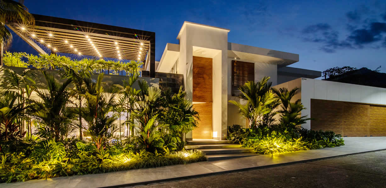 La elegancia se encuentra presente en cada rincón de la Vivienda Altagracia C12. Desde la escenográfica imagen de los baños hasta la sobriedad en los espacios sociales, se percibe una cuidada estética en todos los ambientes. Destaca especialmente el apaciguamiento gentil que se experimenta en el porche posterior, enmarcado por esbeltas palmeras. Al caer la tarde, se crea un juego de sombras tanto en los muros interiores como exteriores, que se prolonga durante la noche, realzando el plan de luces meticulosamente incorporado por la arquitecta. Este conjunto de luces, tipo baño de muro, evoca las salas de exposición de obras plásticas, agregando un toque de sofisticación y destacando la atención al detalle en el diseño de la Vivienda Altagracia C12.